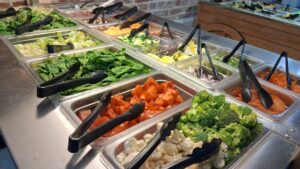 We got a “Twist” sandwich (ham, turkey, bacon, and cheese with BBQ sauce) and a loaded baked potato. Customers get to dress the taters however they wish from the salad bar – within reason 🙂 They also feature a huge salad bar with a wide selection of toppings for folks who just wanna have that.